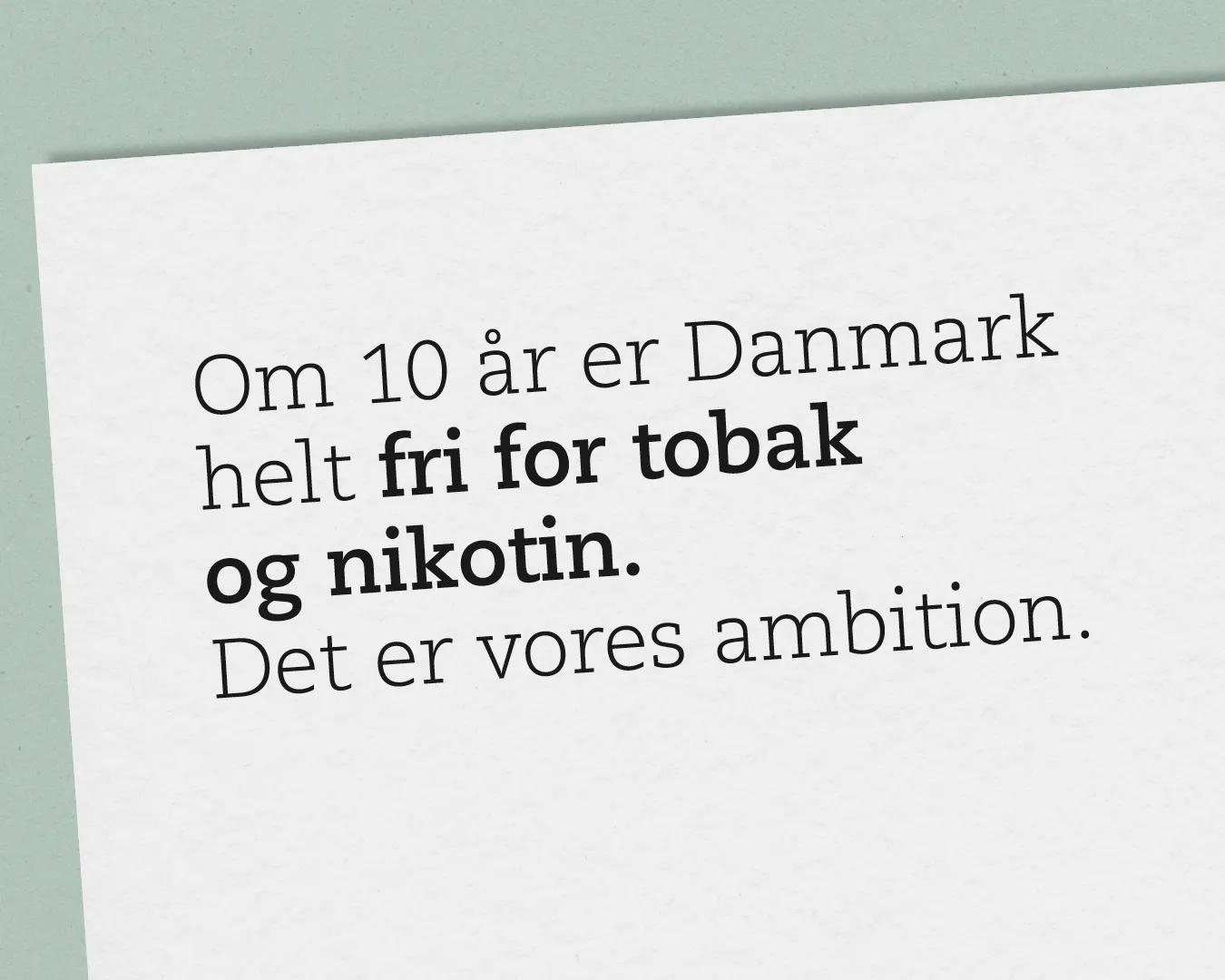 Forestil dig et Danmark, hvor vi kan sige: ”Vi fjernede historiens mest sundhedsskadelige forbrugerprodukt fra markedet.” Hvor børn og unge vokser op uden nikotinafhængighed. Hvor vi fik sat en stopper for at lade en global industri rekruttere nye kunder til produkter, som skader børn og unges hjerneudvikling og for tobakkens vedkommende slår hver anden ihjel.